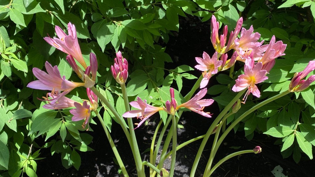 Resurrection lilies revel us in their sudden vertical growth and striking pink blooms, a shade far more common in the spring here than during the mid-late summer months.