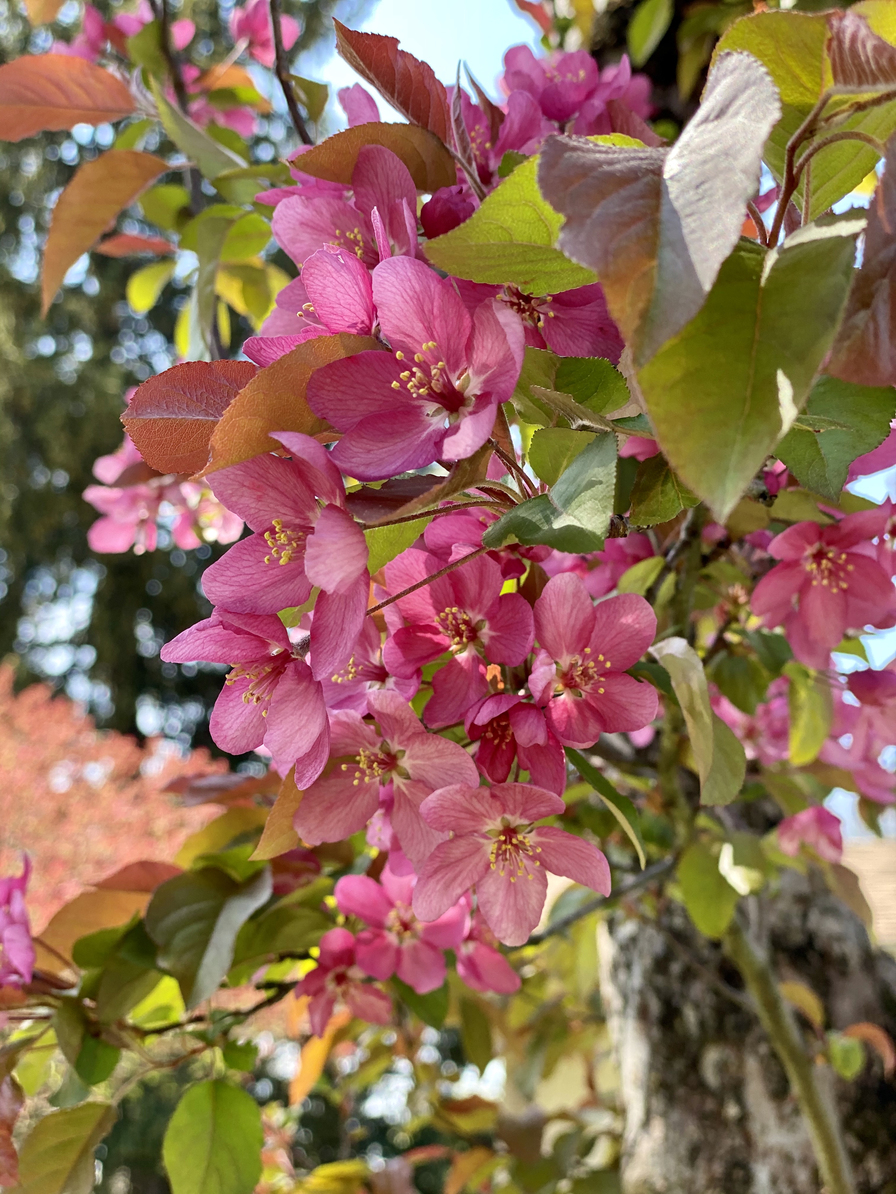 Spring and summer bring a spectacular display of early, mid, and late blooming flowers, shrubs, and trees: crocus, spring beauties, daffodils, tulips, hyacinths, azaleas, rhododendron, dogwood, crab-apple, redbud, fruit trees (and more).